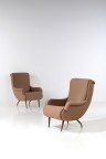 Paire de fauteuils Métal, bois patiné et textile Modèle créé en 2023 H 103 x L 73 x P 90 cm Provenant d'un hôtel particulier décoré par Damien Langlois-Meurinne