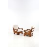 Travail italien Paire de fauteuils Bois massif sculpté et textile Date de création: années 1950 H 96×L 80×P 81 cm