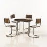 Travail moderniste Une table et quatre chaises Métal chromé et bois Date de création : années 1930 Chaises : H 80 × L 39 × P 39 cm Table : H 65,5 × Ø 90 cm