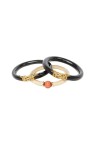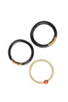 Trois bracelets joncs, deux en bois et fils dorés et un en os et boule de corail