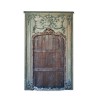 Trumeau en bois peint et doré, à encadrements contournés, trophées de musique, noeud de ruban, palmette et fleurs ; (accidents et manques ; sans glace). Epoque Louis XV. H 226 x L 136 cm