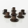 Ulla Procopé (1921-1968) Ensemble de sept tasses à café avec soucoupes Série Ruska Grès Edition Arabia Date de création : vers 1960 Tasses : H 7,5 x Ø 7 cm Sous tasses : Ø 12,5 cm
