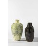 Un ensemble de vases en céramique, l'un à décor floral ( accidents au col et fond percé), l'autre lustré marron gris Travail moderne