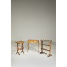 Une petite table bois naturel piètement lyre (Hauteur : 64 cm), une coiffeuse en bois verni, pieds cambrés, style Louis XV ( Hauteur: 64 cm) , une table de salon ovale, bois de placage, trois plateaux, dessus marbre gris accidenté, style Louis XVI (Hauteur 74 cm) ( accidents)