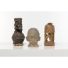 Une poterie, Nigéria, une tête Bas Congo et un fétiche, Nouvelle Guinée Stéatite et bois H 44 cm, H 26 cm et H 33 cm