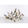Une série de 16 statuettes d'oiseaux en porcelaine allemande polychrome