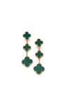 Paire de boucles d'oreilles en or jaune 18k (750‰), ornées chacune de trois motifs quadrilobés en chute sertis de malachite