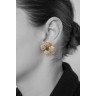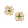 Paire de clips d'oreilles en forme de fleur en or jaune 18k (750‰), les pétales pavées de diamants ronds taille brillant, une émeraude ronde facettée au centre.