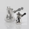 Verseuse égoïste en argent uni à fond plat, le versoir couvert souligné de feuilles de caféier. Le couvercle à charnière, la prise bouton et le manche en bois noirci. Elle est gravée du monogramme "D.D." dans un cartouche feuillagé enrubanné. (Chocs, usure) PARIS 1798-1809 Hauteur : 8,5 cm Poids brut : 103 g