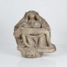 Vierge de Pitié au pied de la croix en pierre calcaire sculptée. Assise et les mains jointes, Marie porte son Fils étendu sur ses genoux ; elle est vêtue d'une guimpe et d'un voile formant manteau. Sud de l'Auvergne, XVIe siècle H 49,2 cm x L 49 cm (quelques accidents)