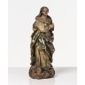 Vierge en bois sculpté en ronde-bosse polychromé et doré. Debout sur des nuées d'où sortent deux têtes d'angelots, les mains jointes, elle est vêtue d'une tunique et d'un manteau étoilé dont un pan revient sur le devant. XVII/XVIIIe siècle Hauteur : 44,5 cm (quelques accidents notamment aux doigts et aux yeux, vermoulures)