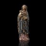 Vierge à l’Enfant en noyer sculpté, polychromé et doré, dos plat. Debout, elle porte l’Enfant sur son bras droit ; visage poupin encadré par de longues mèches de cheveux ondulés tombant sur les épaules ; elle est vêtue d’une robe à l’encolure carrée et d’un manteau dont un pan revient sur le devant ; l’Enfant tient un livre ouvert sur lequel il écrit de la main droite. Flandres, Malines, vers 1500/1510 H 37 cm (reprises et manques à la polychromie, vermoulures)