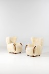 Paire de fauteuils Hêtre teinté et textile Édition Slagelse Møbelvaerk Modèle créé vers 1940 H 101 × L 82 × P 90 cm