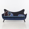 Vincent Darré Guillotiné Sofa Conversation Velour de soie bleu Pierre Frey et tapisserie originale d'Aubusson Pièce unique Date de création : 2014 H 104 × L 210 × P 70 cm
