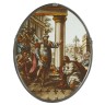 Vitrail représentant le Pharaon donnant son anneau à Joseph. XIXe siècle Hauteur : 25,5 cm - Largeur : 21,5 cm Provenance : Succession de M D.