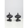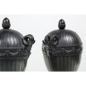B Paire de vases couverts à décor à l'imitation de la draperie soutenue par des noeuds, prise à tête de satyres, surmonté d'un gland, base carrée à décor de frises.