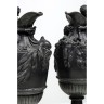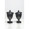 Paire de vases couverts, les anses à têtes de vestales, médaillons représentant le sacrifice à Esculape au dessus d'une guirlande, prise de préhension à décor de sybille, pièdouche sur une base carrée à décor de frises.