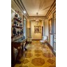 O Athénienne tripode , le couvercle reversible presentant d'un coté, une fleur de lotus et de l'autre un bougeoir, frise à décor floral et de lyre antique. Le piètement tripode se terminant par des mufles de lion, sur une base triangulaire.
