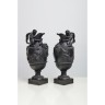 A Paire d'aiguières dit "le sacre de Bacchus" et "le sacre de Neptune" à décor de satyre et tritons, guirlandes de feuilles et grappes de vignes, reposant sur une base carrée.