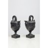 C Paire d'aiguières à décor en partie superieure écaillée imitant une queue de poisson, frises de grecques et draperies, le bec verseur à masque de satyre. Base carrée à décor de frises.
