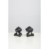 H Deux lampes à huile à décor de vestales, dont une lisant et une avec une jarre, de formes navettes reposant sur un piédouche cannelé sur une base carrée.