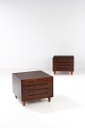 Paire de chevets ou commodes Noyer Édition Dunbar Étiquettes partiellement déchirées au dessous Modèle créé dans les années 1950 H 61,5×L 76×P 76cm