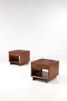 Paire de chevets - Série 'Taliesin' Noyer Édition Heritage Henredon Signée au feu 'FLW' et 'Heritage Henredon' à l'intérieur des tiroirs Modèle créé en 1955 H 58×L 66×P 68cm