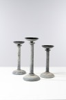 Suite de trois bougeoirs - Modèle 'Corroso' Verre Scavo et laiton Édition Seguso Signés 'Karl Springer' sous la base Modèle créé dans les années 1970 H 48 × Ø 21 cm H 42 × Ø 19,5cm H 38,5 × Ø 19cm