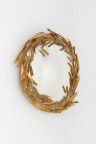 Miroir Laiton, bronze et miroir sorcière Daté et signé '1972 Robert Goossens' sur une feuille Modèle créé en 1972 Ø 60 × P 15cm
