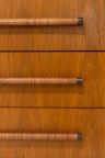 Commode double Noyer, laiton et cannage Édition Widdicomb Étiquette de l'éditeur dans un tiroir Modèle créé en 1953 H 81 ×L 172×P 54cm