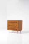 Commode Noyer, laiton et cannage Édition Widdicomb Étiquette de l'éditeur dans un tiroir Modèle créé en 1953 H 81 x L 87 x P 54 cm