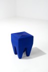 Tabouret - Modèle 'LOUXAC' Prototype Corde de coton peinte bleu Outremer Modèle créé en 1994 H 43×L 32×P 32cm