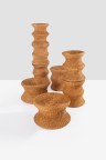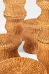 Ensemble de huit tabourets modèle ‘Juttu’ Rotin Édition Asko Modèles créés vers 1960 H 44ר36 ; H 41ר50cm