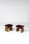 Paire de tabourets Placage de noyer, noyer et velours Modèle créé dans les années 1930 H 44×L 51 ×P 33cm Expertisée par les Archives Gio Ponti