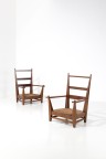 Paire de hautes chauffeuses Châtaignier et cordage Modèle créé vers 1945 H 114×L 86,5×P 70cm Expertisée par les Archives Gio Ponti