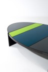 Table basse ovale - Modèle 'Montaigne' Bronze patiné et miroir teinté Cachet de l'artiste sur une plaque sous le plateau Modèle créé en 2011 H 40×L 225×P 127,5cm