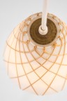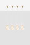 Ensemble de quatre plafonniers modèle n°20473 Laiton, verre et rotin Modèle créé vers 1950 H 140ר22 cm Bibliographie : Catalogue commercial Idman, n°138, 1955, modèle illustrée p. 29