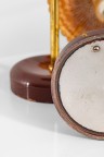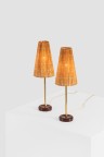 Paire de lampes de table Laiton, lamelles de bois et métal laqué Édition Idman Chaque lampe estampillée 'Idman' Modèle créé vers 1955 H 53ר16cm (avec abat-jour)