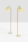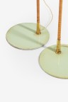 Paire de lampadaires modèle n°9629 Laiton, métal laqué et rotin Édition Taito Oy L'une estampillée 'OYTAITOAB 9629' Modèle créé vers 1950 H 148ר25cm Bibliographie : Catalogue commercial Idman n°136,1954, modèle illustré p. 57