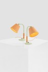 Paire de lampes de table Métal laqué, textile et bois Édition Taito Oy Chacune estampillée 'OYTAITOAB' Modèle créé vers 1940 H 33ר17cm