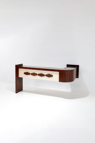Laiton, lamelles de bois et verre