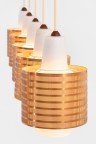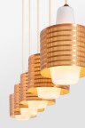 Plafonnier modèle K2-116/5 Teck, verre et cuivre Édition Idman Modèle créé vers 1960 H 160×L 115×P 16cm Bibliographie : Catalogue commercial Idman n°143, 1961, modèle illustré p.K18