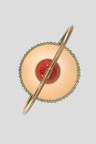Laiton, métal laqué, verre et lamelles de bois