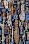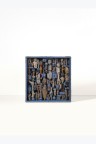 Technique mixte, assemblage de bois flottants peints et pierre dans un emboîtage