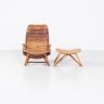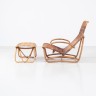 Yuruzu Yamakawa (né en 1933) Chaise longue et ottoman Rotin Édition Yamakawa Rattan Modèle créé vers 1960 H 82 × L 62 × P 82 cm (fauteuil) H 35×L 58 × P 40 (ottoman)