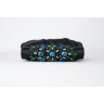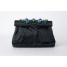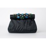 YVES SAINT LAURENT - 2000/2010's MINAUDIÈRE en satin noir, fermoir à cadre en métal doré orné de strass et de cabochons en verre, si...