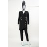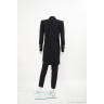 ROBE-MANTEAU en crêpe de laine noir, boutons en métal doré, ourlet asymétrique