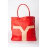 YVES SAINT LAURENT RIVE GAUCHE CABAS en cuir vermillon et beige, garnitures en métal doré