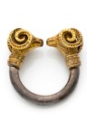 Bague "Têtes de béliers" en argent (800‰) et or jaune 18k (750‰) Signée, gravée K22 T47 Tdd : 50 (anneau ouvert) Poids : 14,6 g (dont 4,6 g d'or)