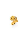 Bague "tête de lion" en or jaune 18k (750‰) finement ciselé et torsadé, diamants taillés en rose et rubis cabochon pour les yeux Trace de signature Tdd : 50 Poids brut : 10,5 g